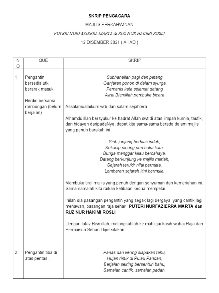 Skrip Pengacara Majlis Perkahwinan Pdf